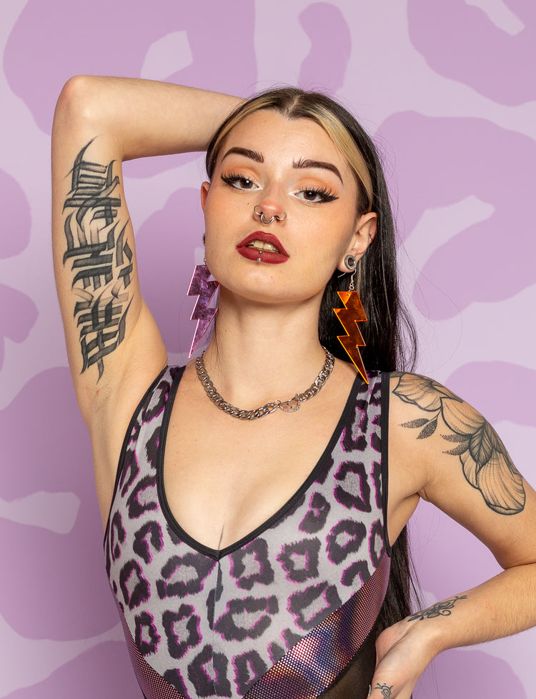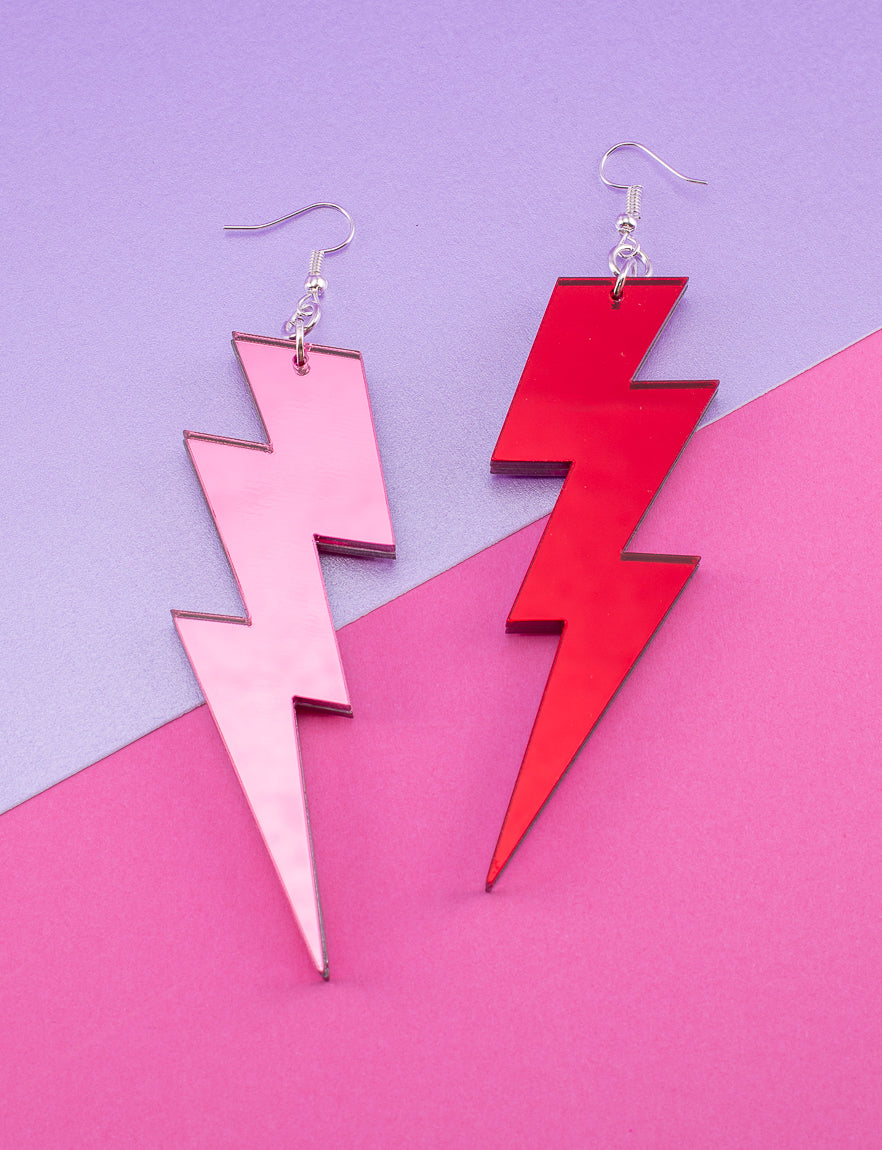 As part of our bespoke collaboration with Animal Hair... these double mirror, contrasting pink and red lightning bolts are the perfect addition to any party outfit.