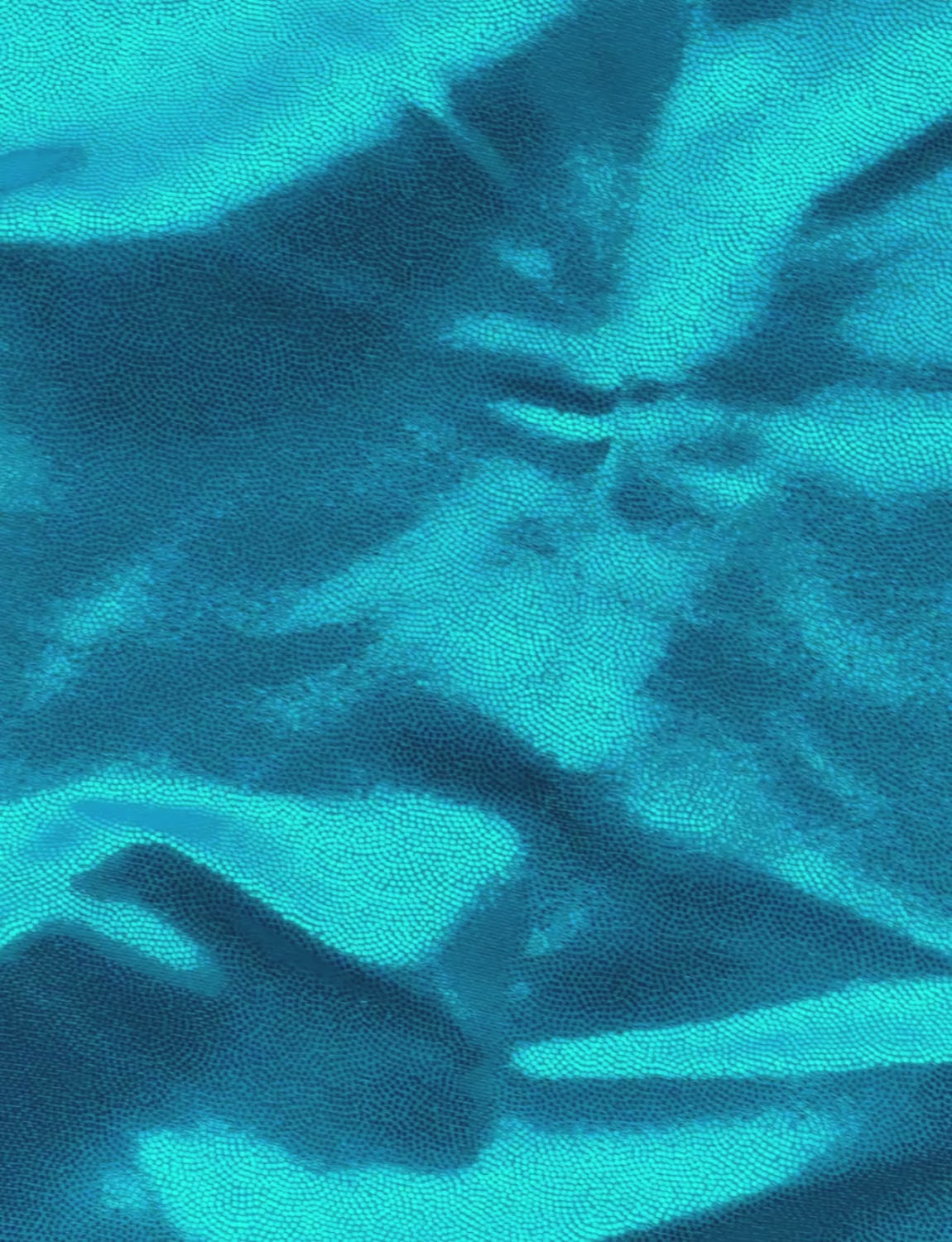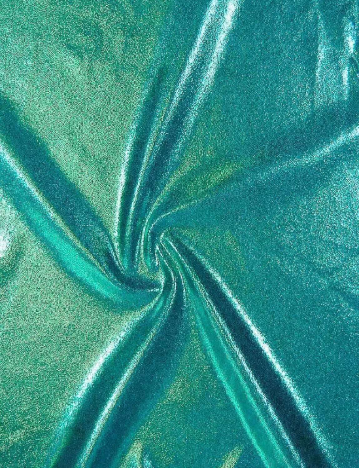 Dreamy ocean blue-green two tone foil on turquoise stretch fabric