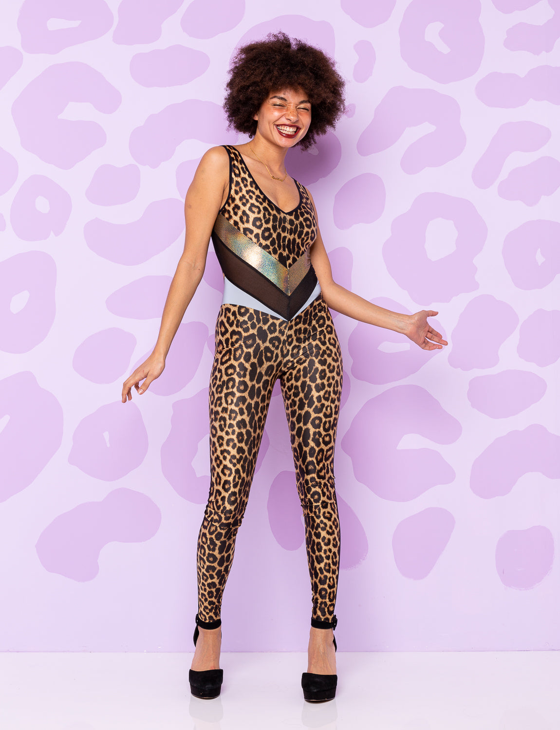 Made from our classic leopard print on eco Lycra, this is one of our go-to catsuits.